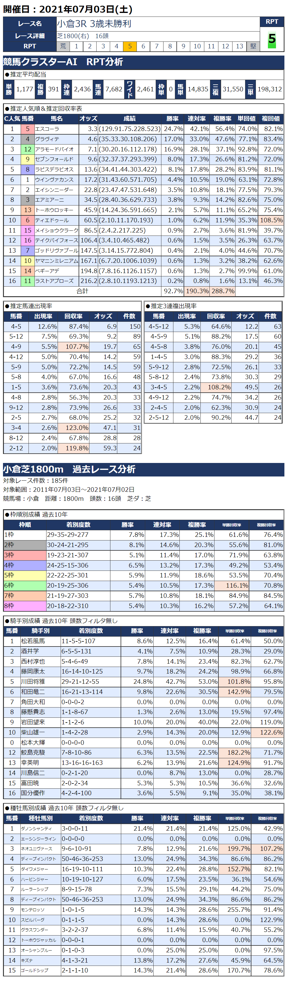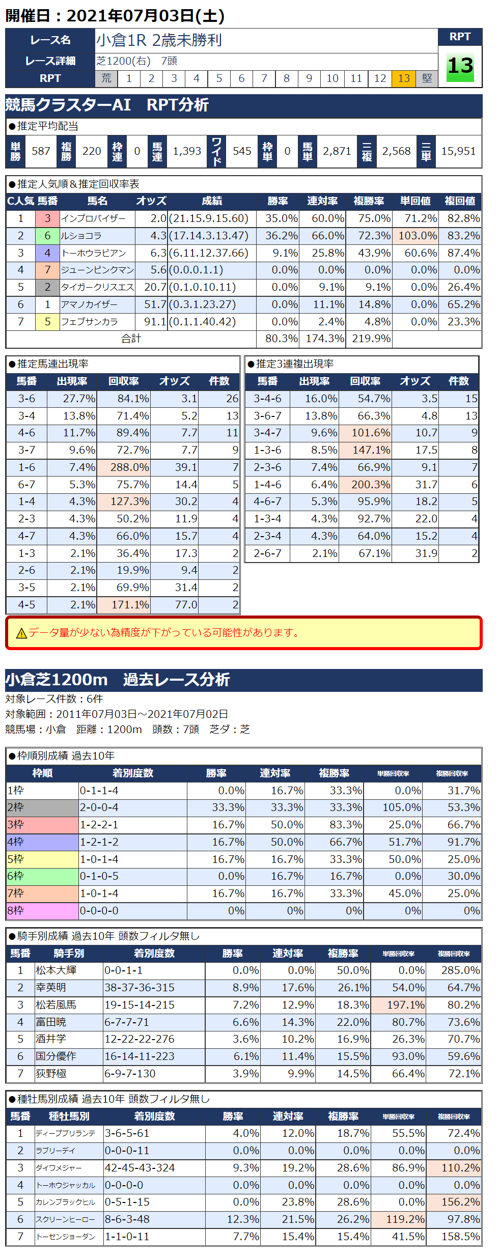 7/3(土)小倉競馬『KC新聞』全12レース