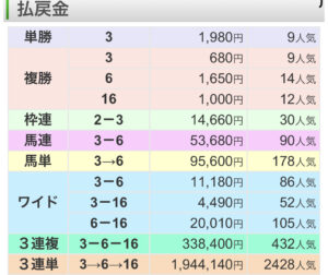 単勝③1,980円(当日9番人気)
