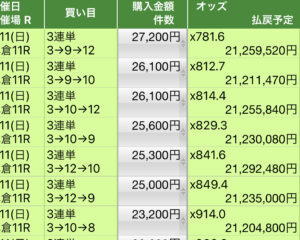 では、この記事書いてる時では、先週の2021.7.11の小倉11RプロキシオンSより説明していきます。