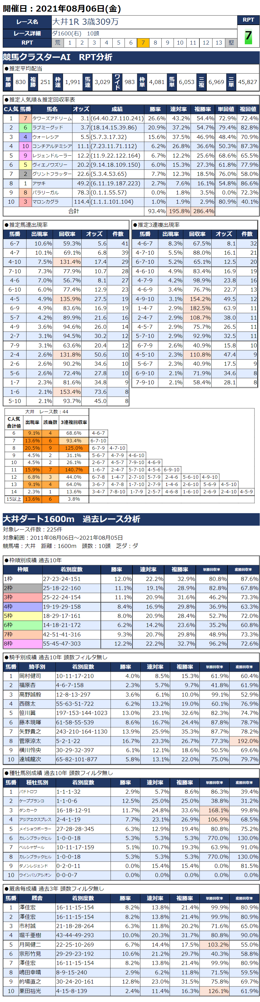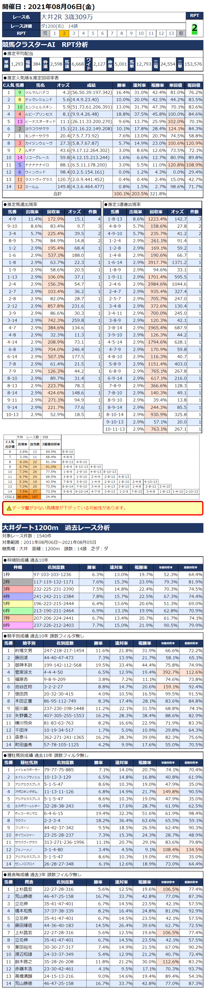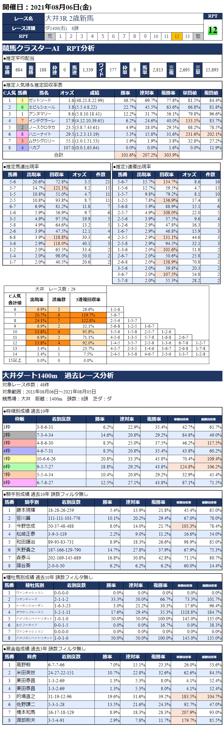 8/6(金)大井競馬『KC新聞』全12レース