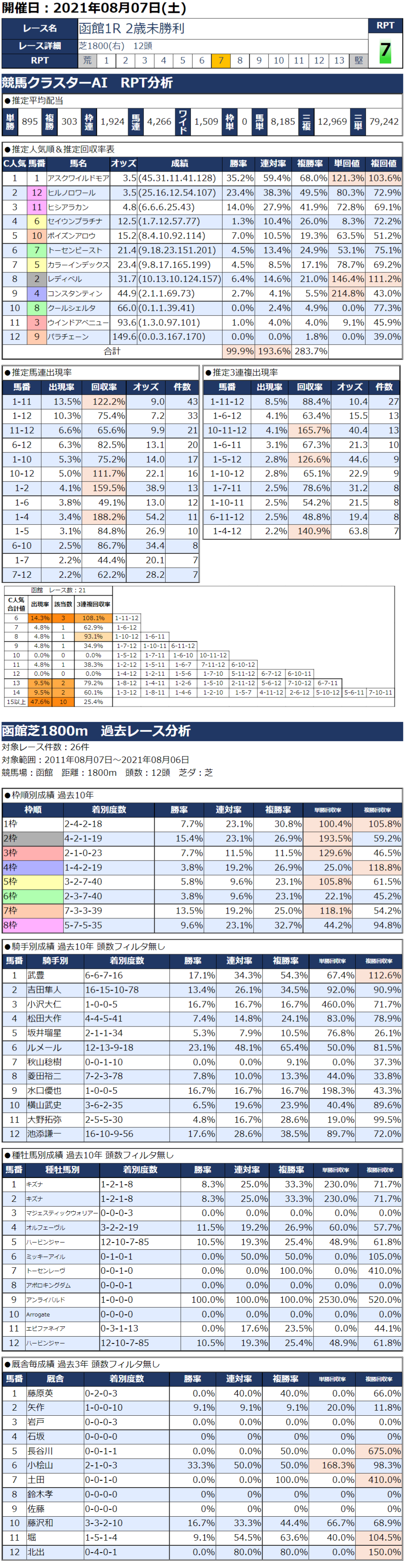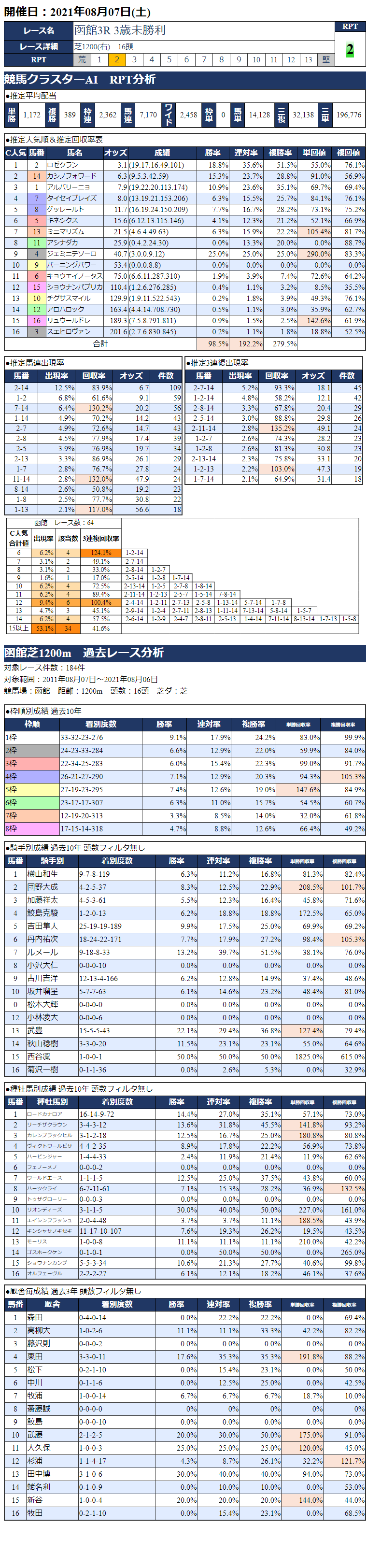8/7(土)函館競馬『KC新聞』全12レース