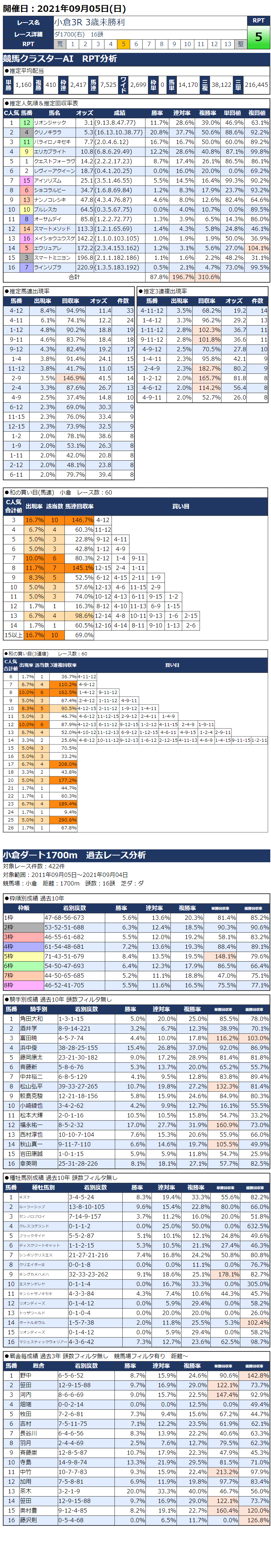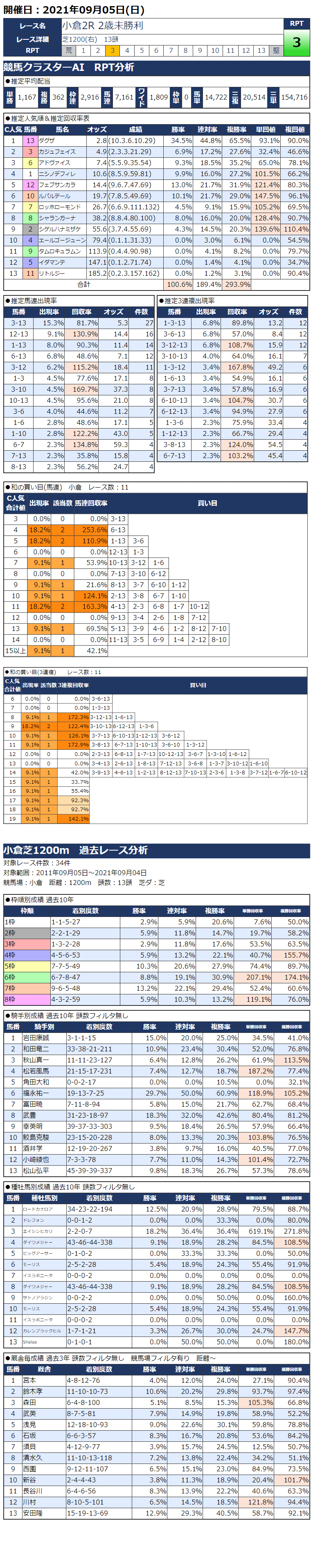 9/5(日)小倉競馬『KC新聞』全12レース