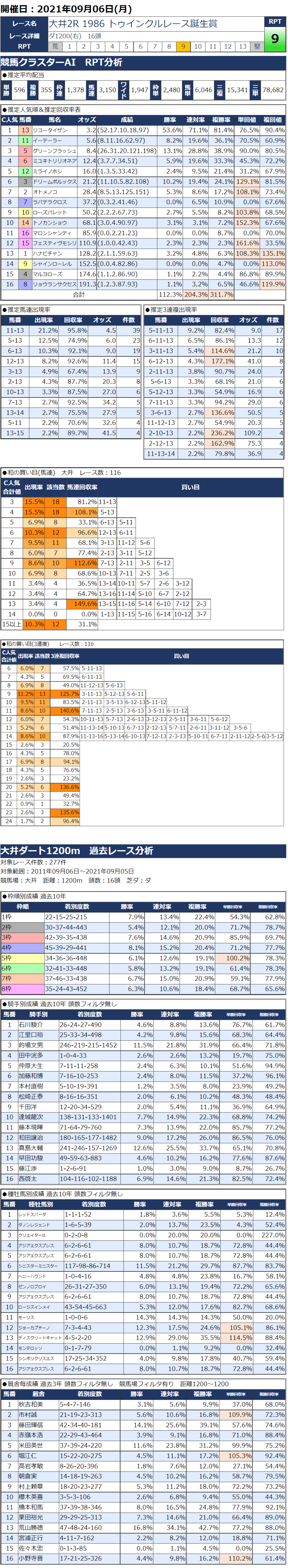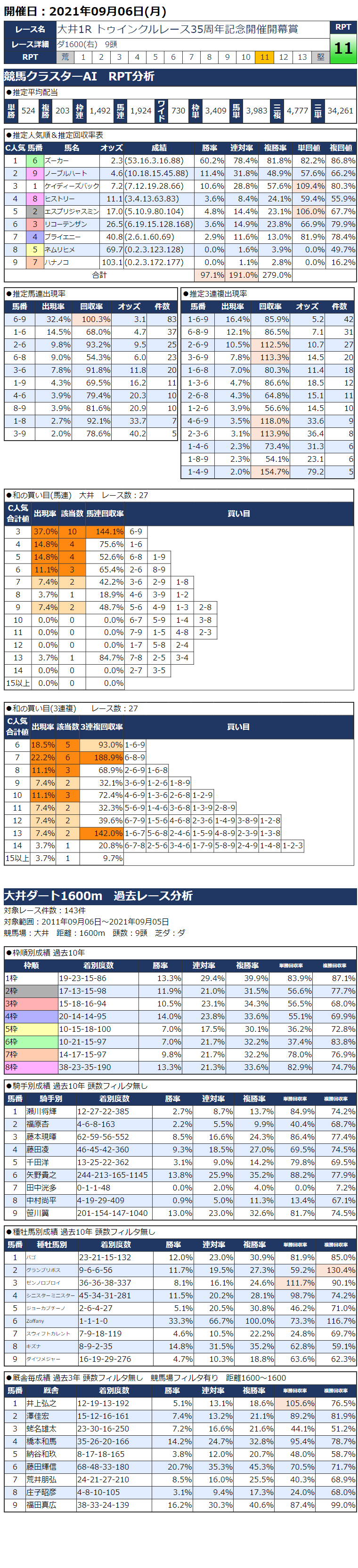 9/6(月)大井競馬『KC新聞』全12レース