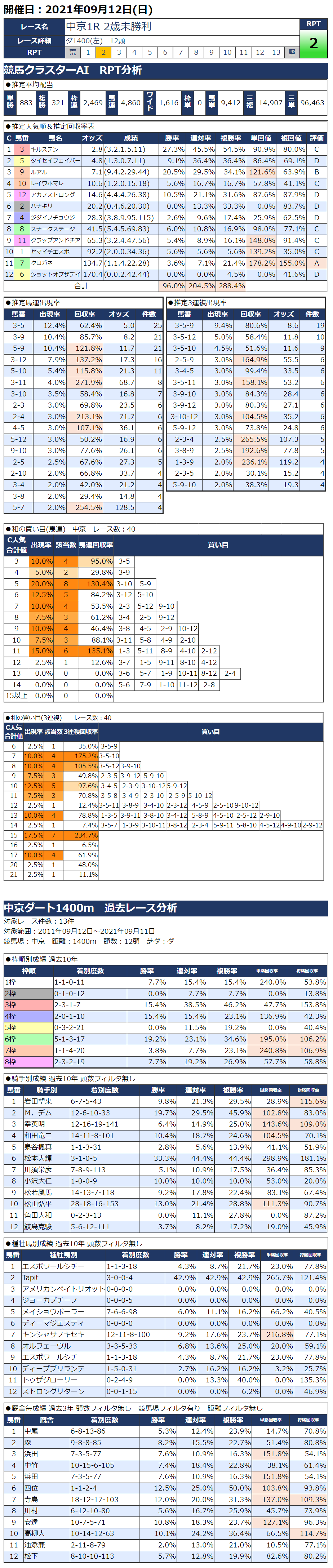 9/12(日)中京競馬『KC新聞』全12レース