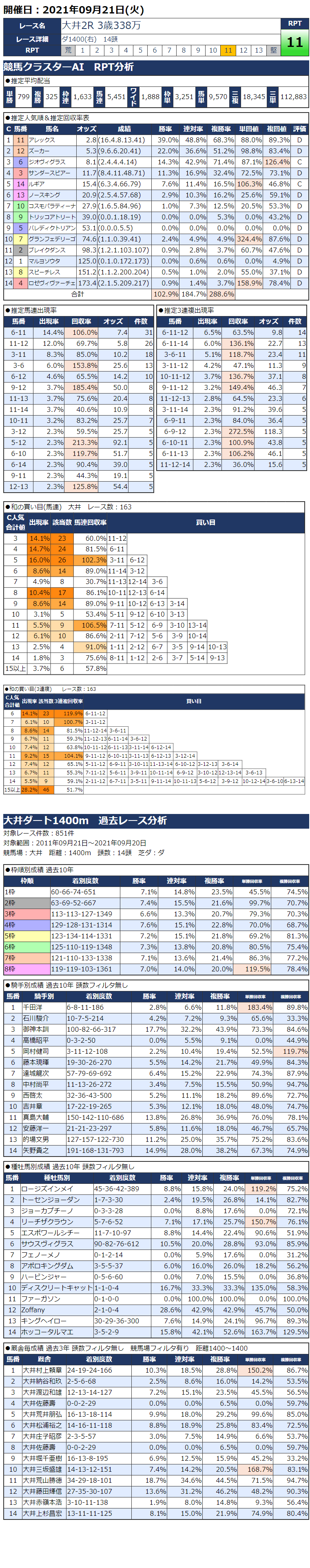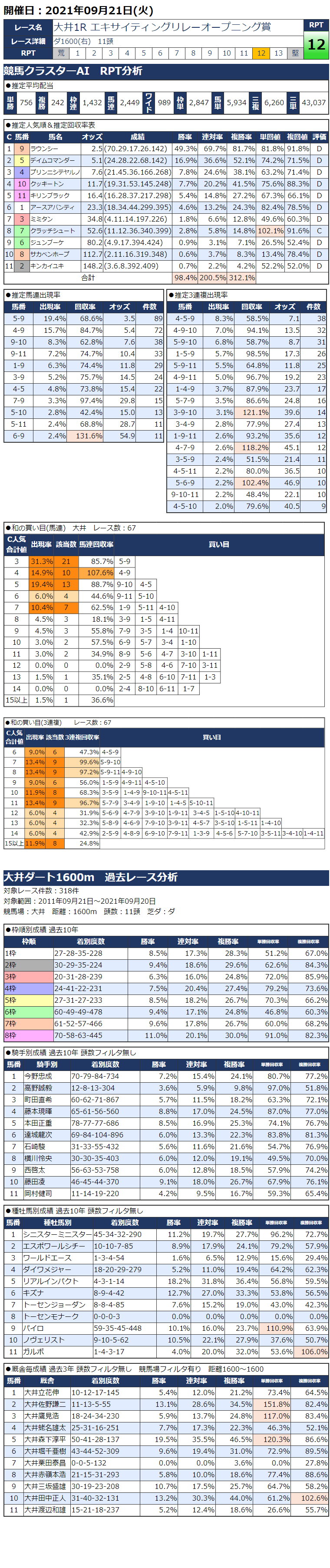 9/21(火)大井競馬『KC新聞』全12レース