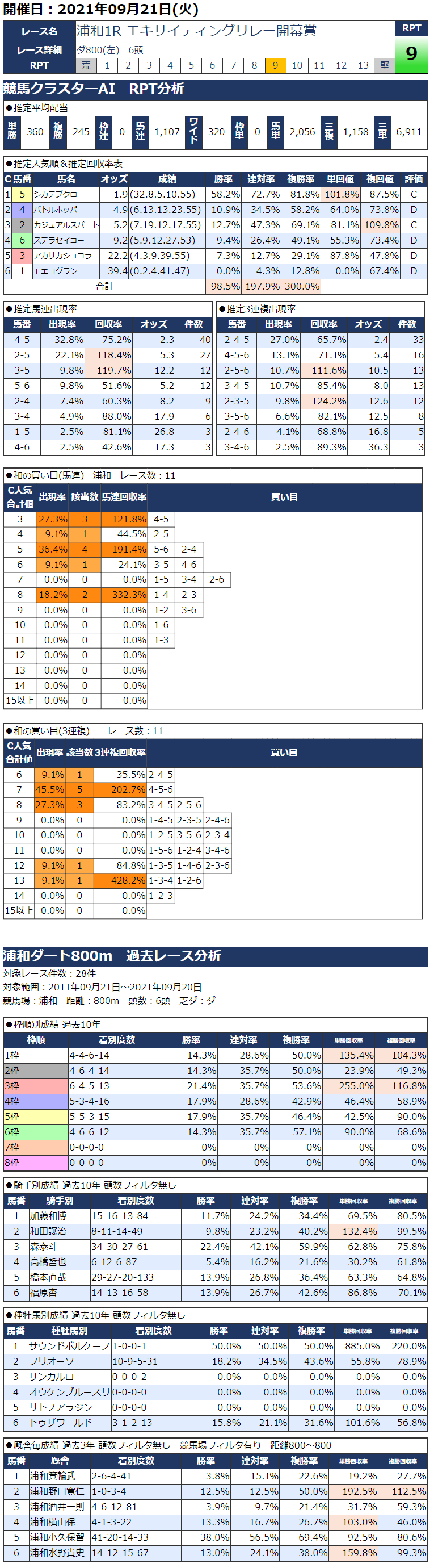 9/21(火)浦和競馬『KC新聞』全12レース