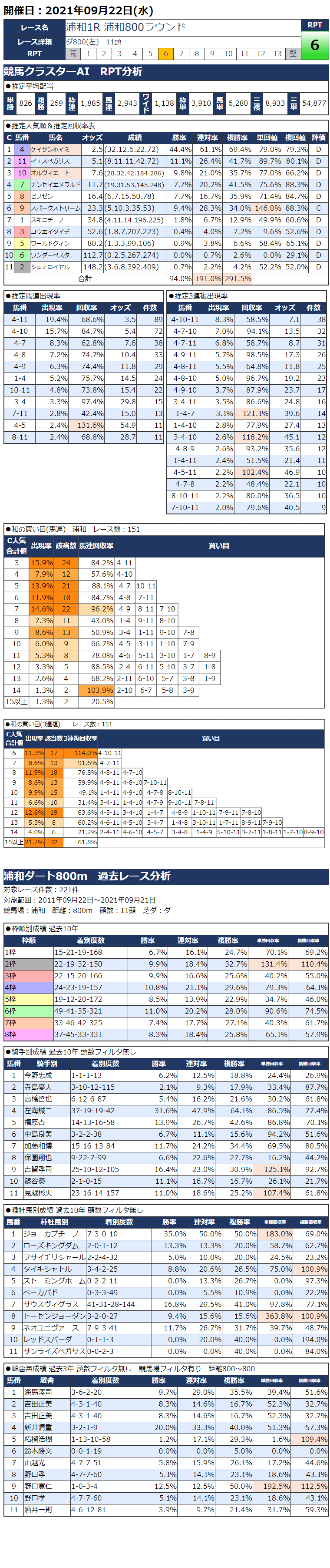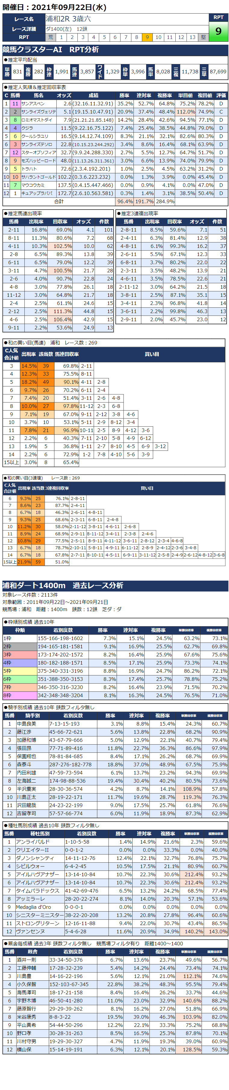 9/22(水)浦和競馬『KC新聞』全12レース