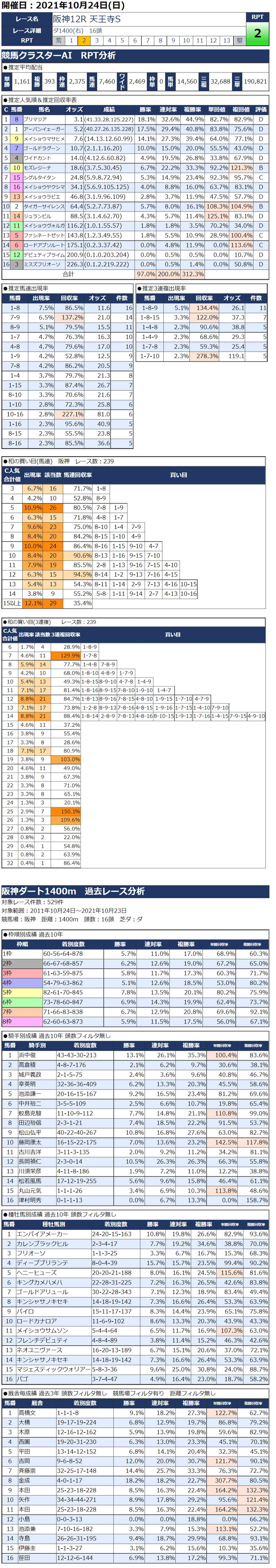 10/24(日)阪神競馬『KC新聞』全12レース