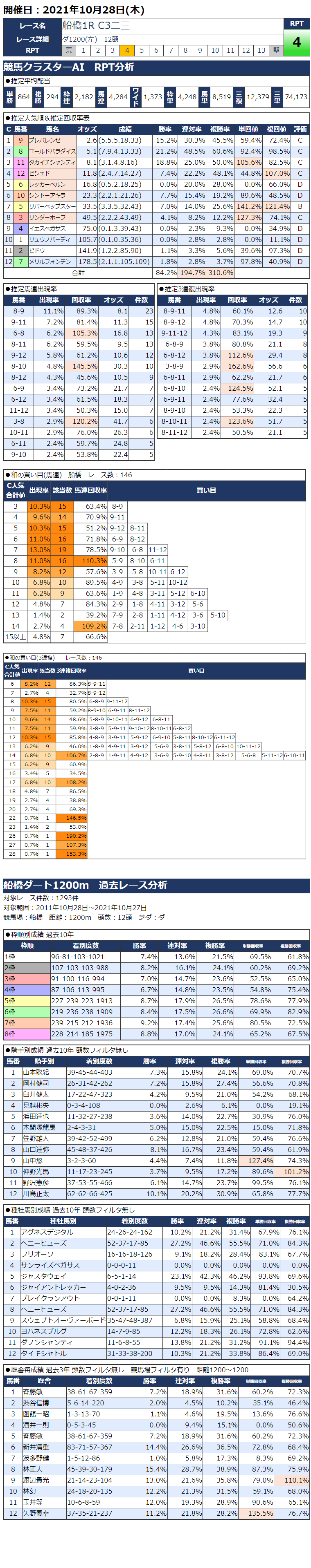 10/28(木)船橋競馬『KC新聞』全12レース