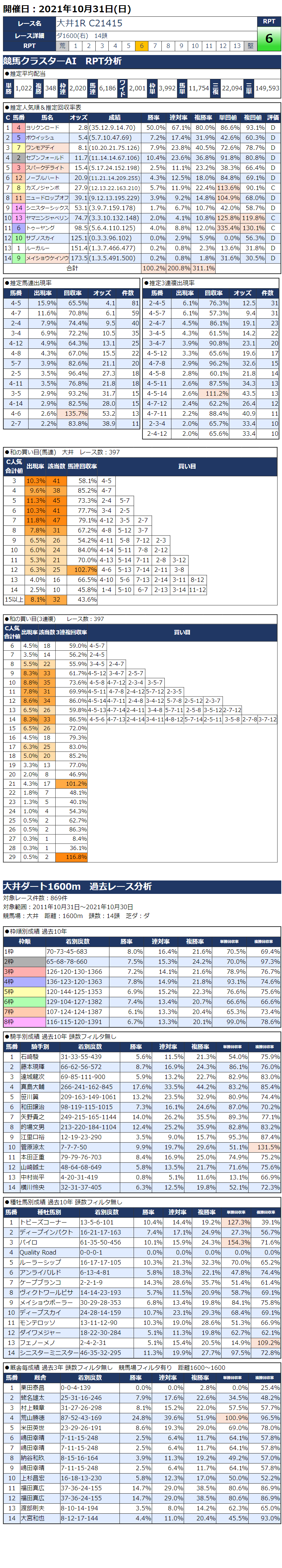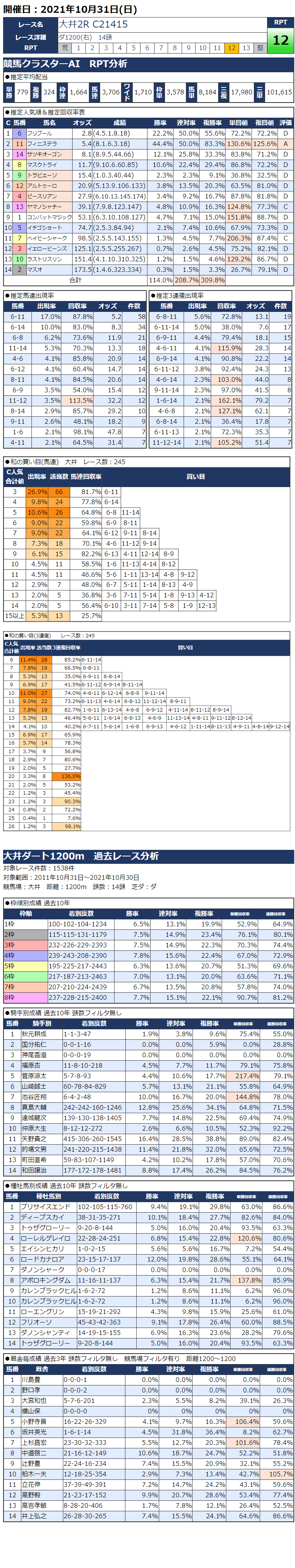 10/31(日)大井競馬『KC新聞』全12レース