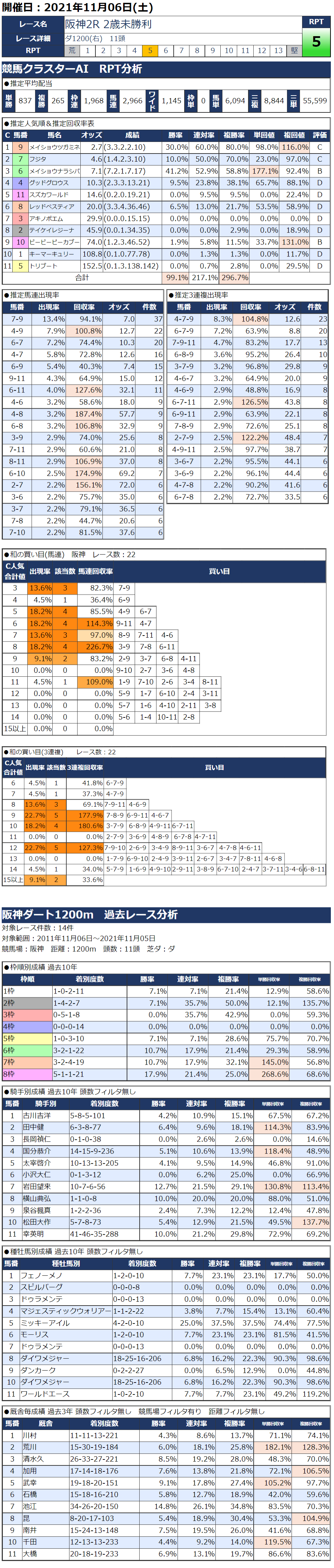 11/6(土)阪神競馬『KC新聞』全12レース