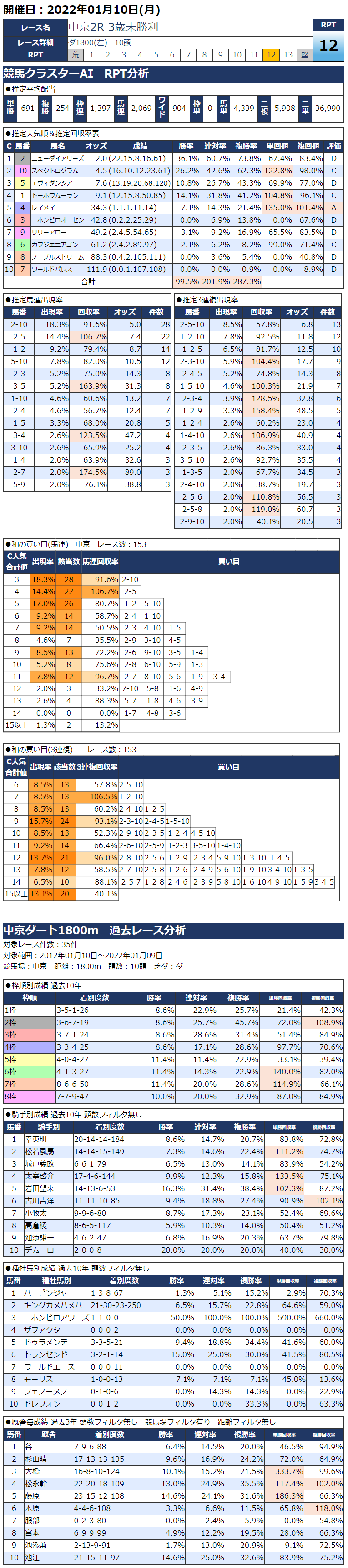 1/10(月)中京競馬『KC新聞』全12レース