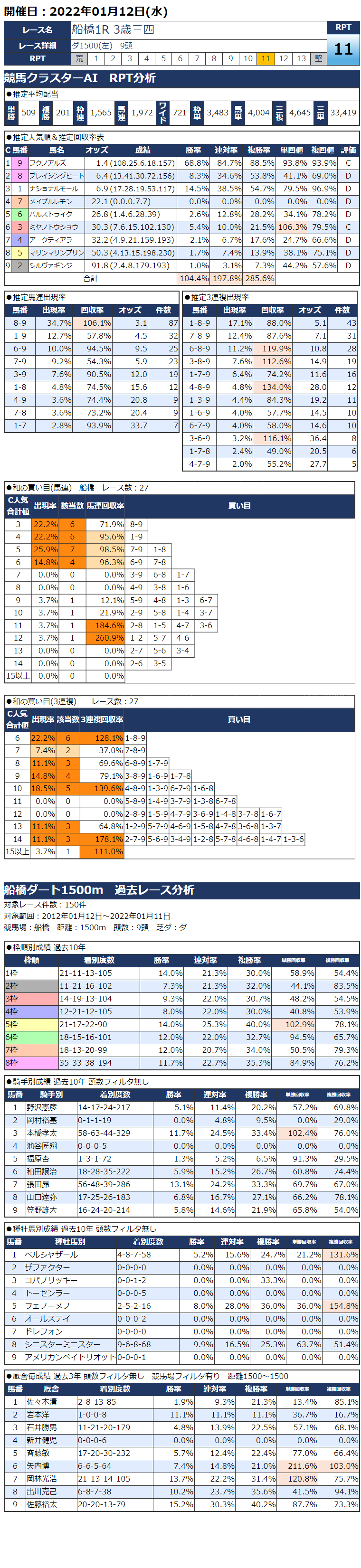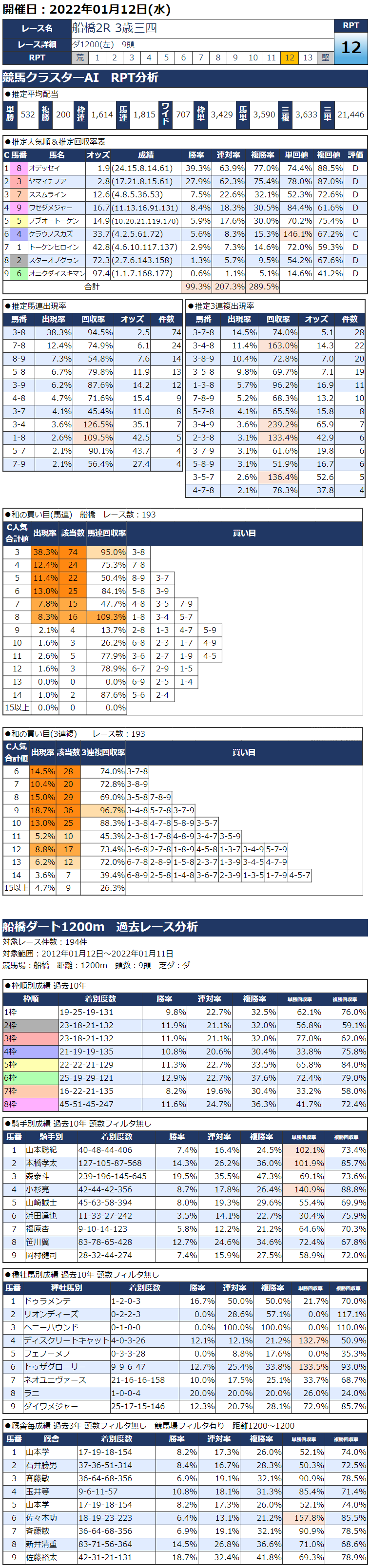 1/12(水)船橋競馬『KC新聞』全12レース