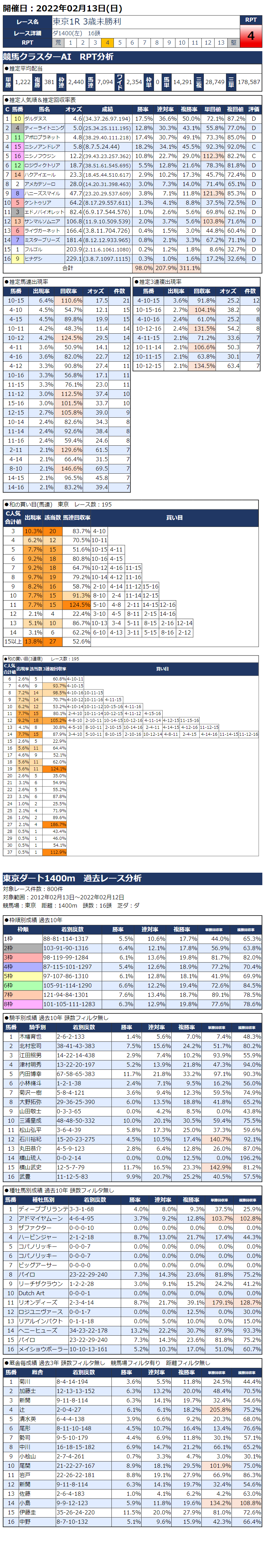 2/13(日)東京競馬『KC新聞』全12レース