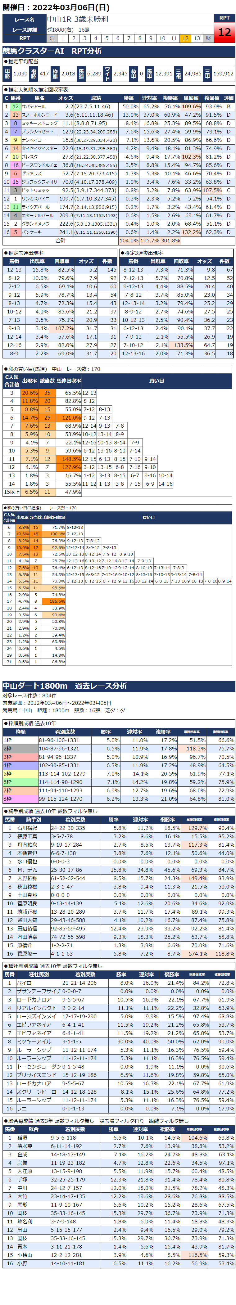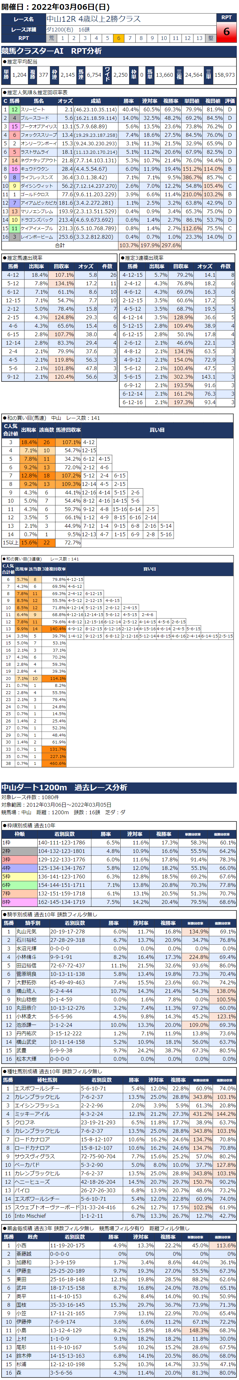 3/6(日)中山競馬『KC新聞』全12レース