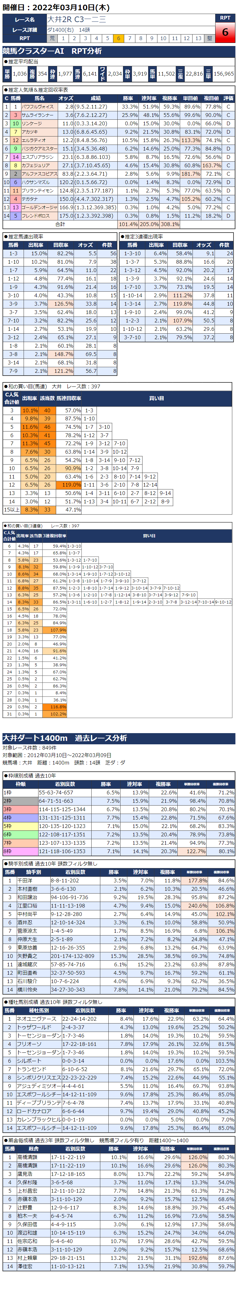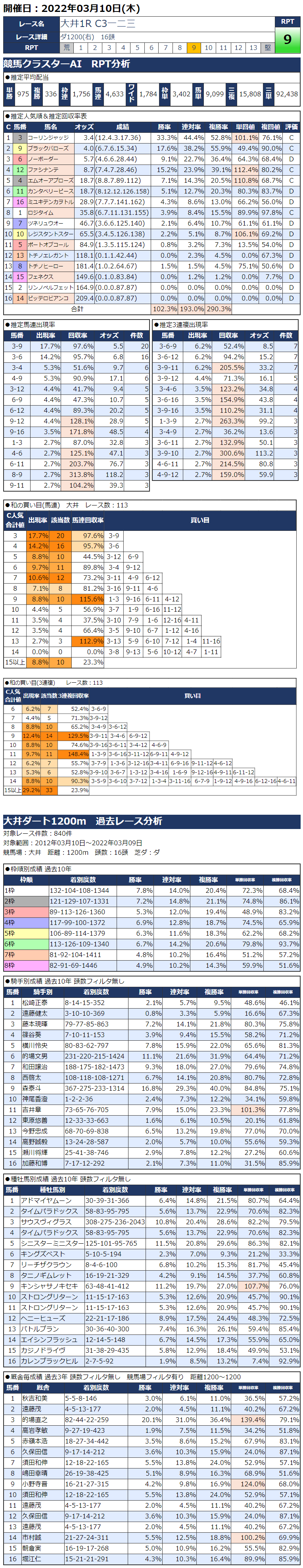 3/10(木)大井競馬『KC新聞』全12レース