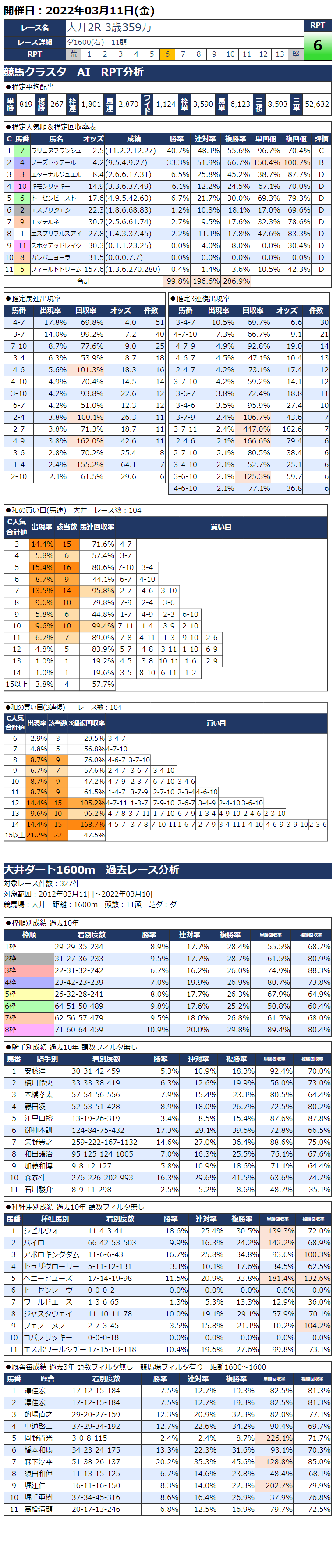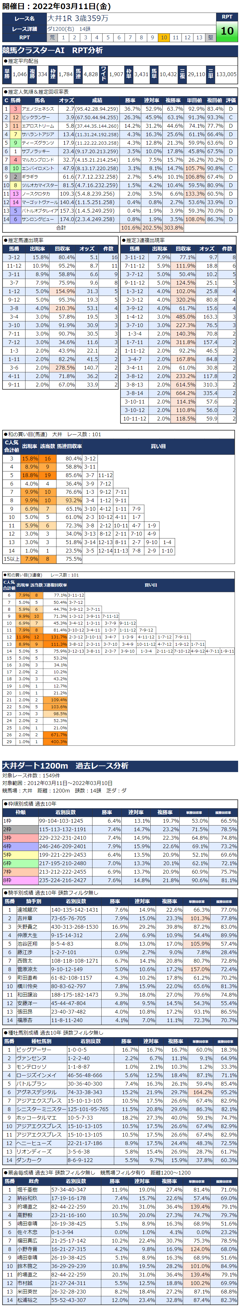 3/11(金)大井競馬『KC新聞』全12レース